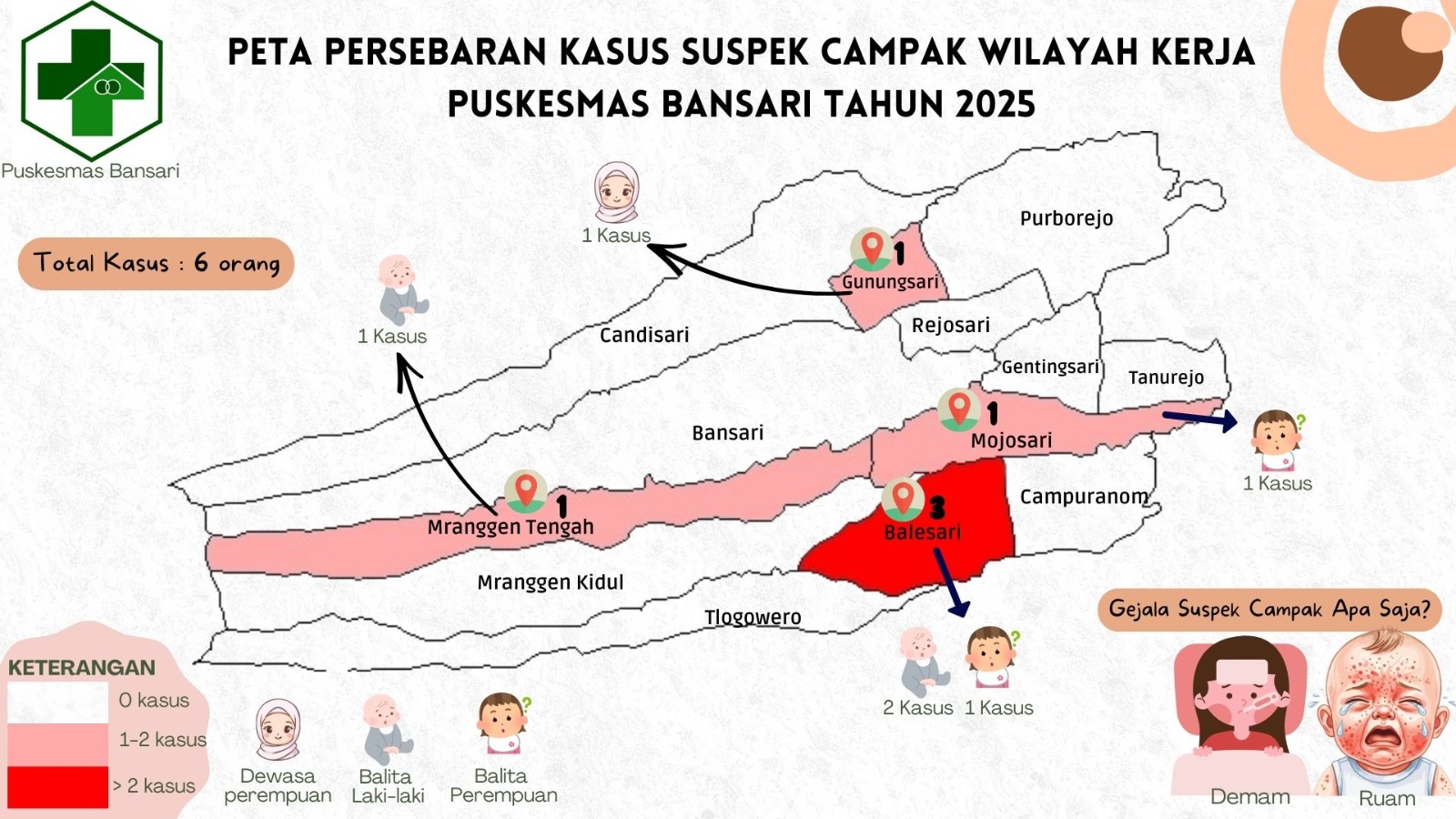 Peta Persebaran Campak di Puskesmas Bansari Tahun 2025